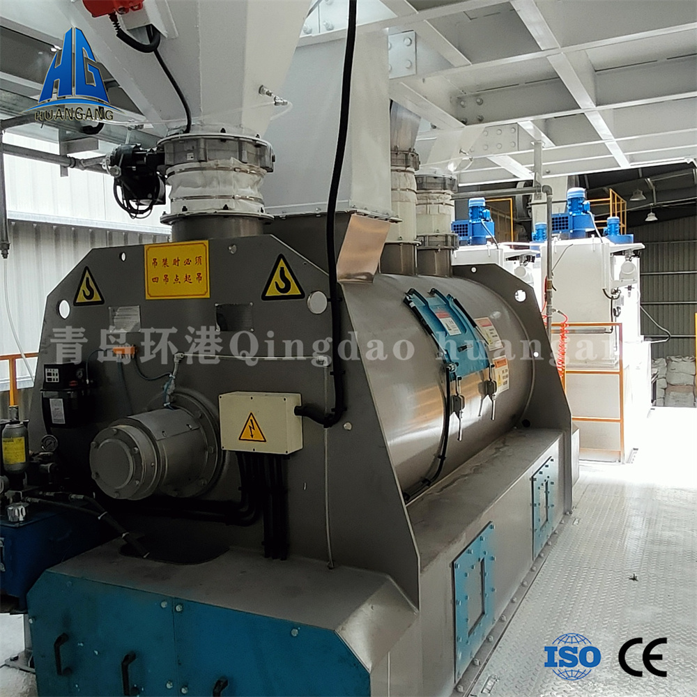 雙軸無(wú)重力混合機(jī)最大容積可達(dá)4000-8000L,雙軸轉(zhuǎn)速每分鐘55轉(zhuǎn),相比于單軸混合機(jī)攪拌容積比較大,適合更大產(chǎn)量的散裝物料生產(chǎn),能在180秒左右把計(jì)量好的砂子,水泥,石膏、粉煤灰、重鈣、灰鈣,外加劑等原材料充分翻合均勻,形成達(dá)到規(guī)定強(qiáng)度的成品物料,還使用了獨(dú)特的液壓開(kāi)門(mén)結(jié)構(gòu),能使物料在10秒內(nèi)卸料完成,出料殘余少,并且我們的混合機(jī)出料口設(shè)有分料器,可根據(jù)需要控制成品物料是送往包裝機(jī)進(jìn)行袋裝或經(jīng)過(guò)干粉送料螺旋送到散裝頭進(jìn)行散裝。