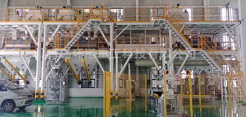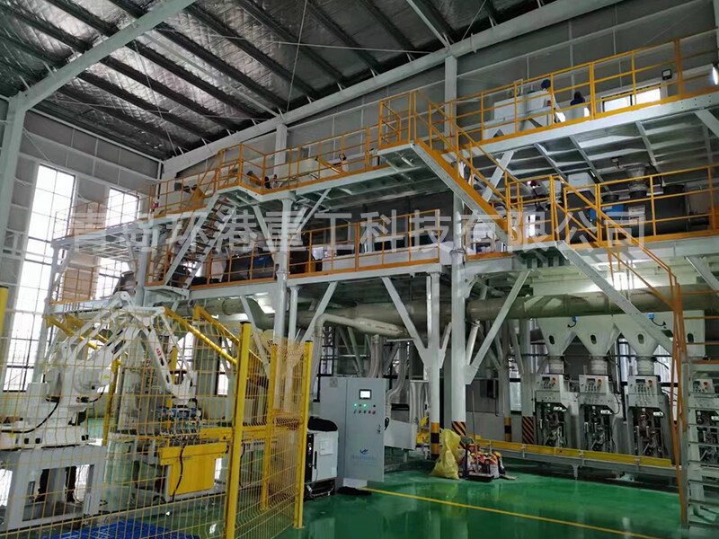該生產線由儲料系統、輸送系統、稱重配料系統、混合系統、成品儲存系統、包裝系統、除塵系統和電控操作系統等組合而成。在秉承傳統干粉混合生產線運行穩定、計量精確、操控簡易的基礎上,采用頂部配料的方式,減少物料輸送行程,降低批次生產所需時間,提高產量。物料在整個生產流程中都在密封環境下進行,降低灰塵。再配備我公司生產的脈沖除塵器,大大改良生產環境,保證工作人員的身體健康。